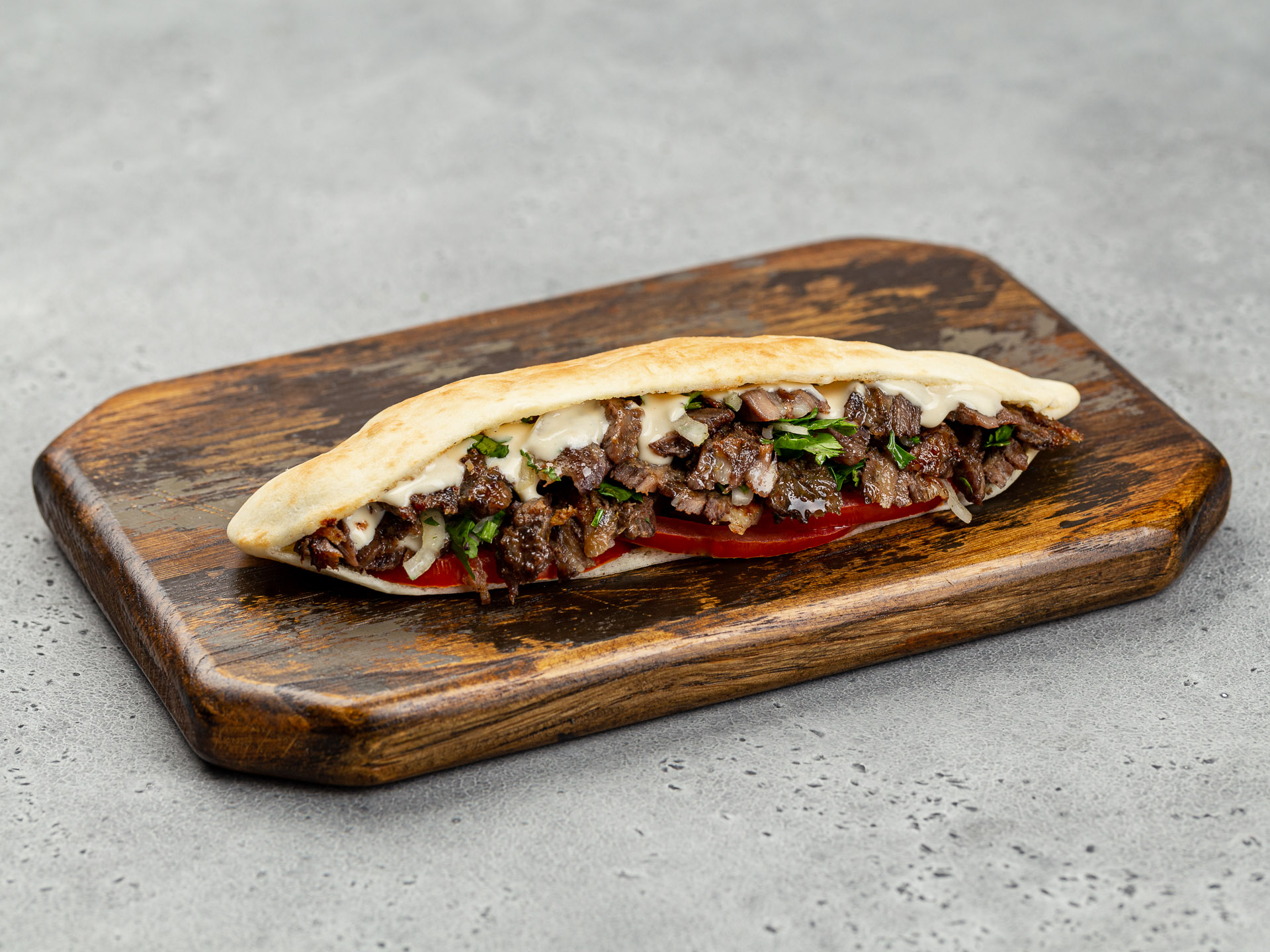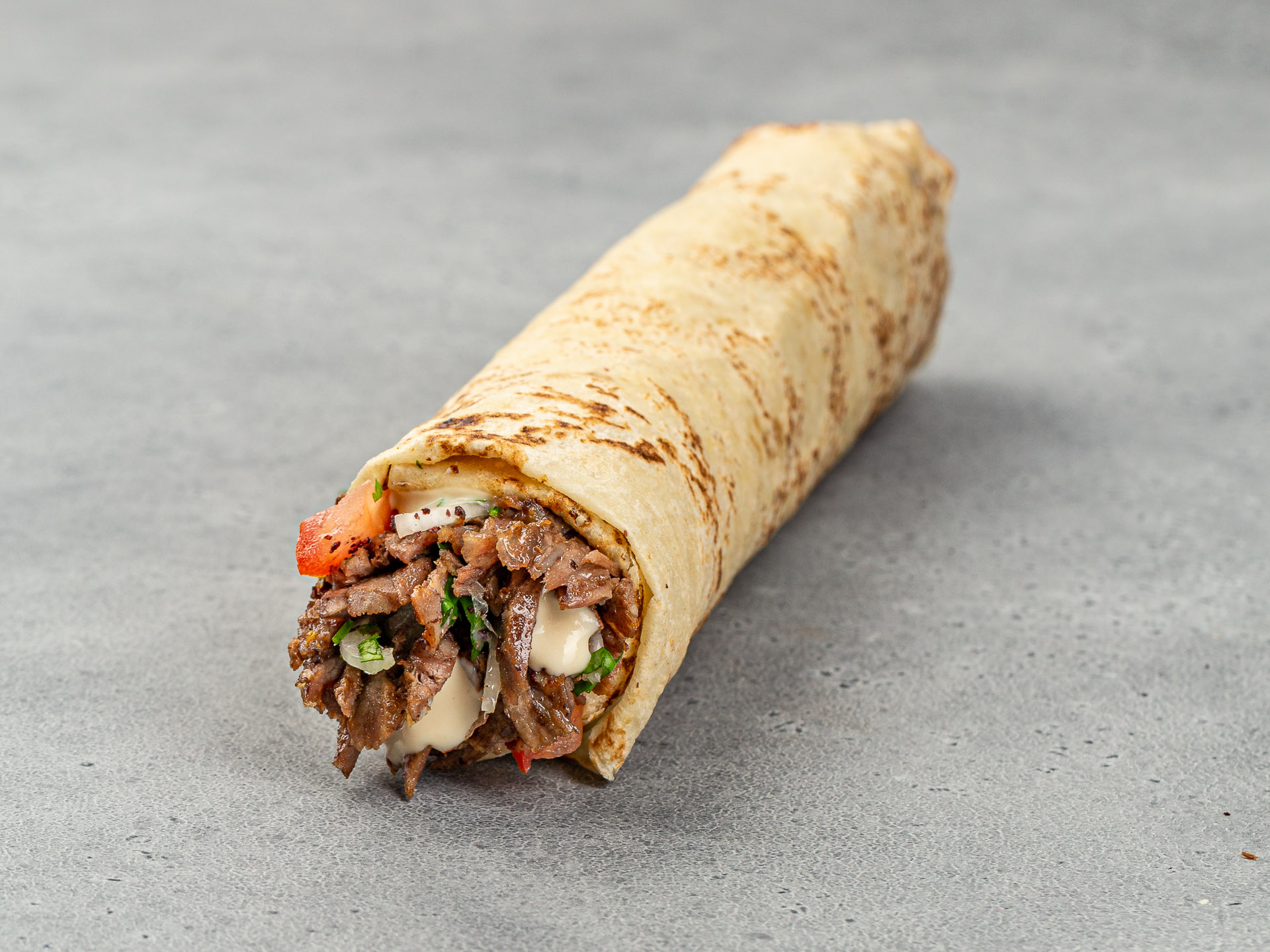 خبز صاج شاورما لحم , بقدونس ,بصل ,طماطم , طحينية